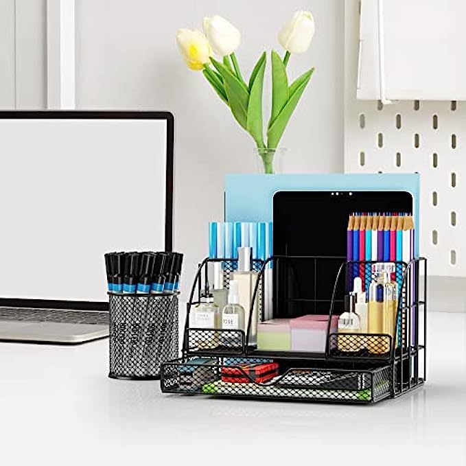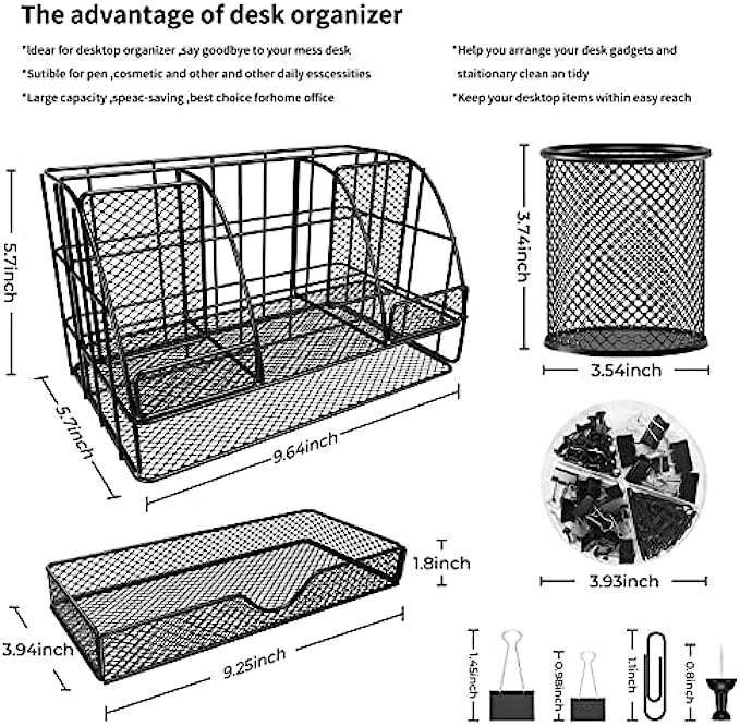 【Unique And Stylish】: Desk organization use black metal finish design, simple and stylish, easily match other office accessories and surrounding decorations.It is suitable for home, office, classroom, etc; Nice on desktop, living room, bedroom dresser, coffee table, shelf, etc.