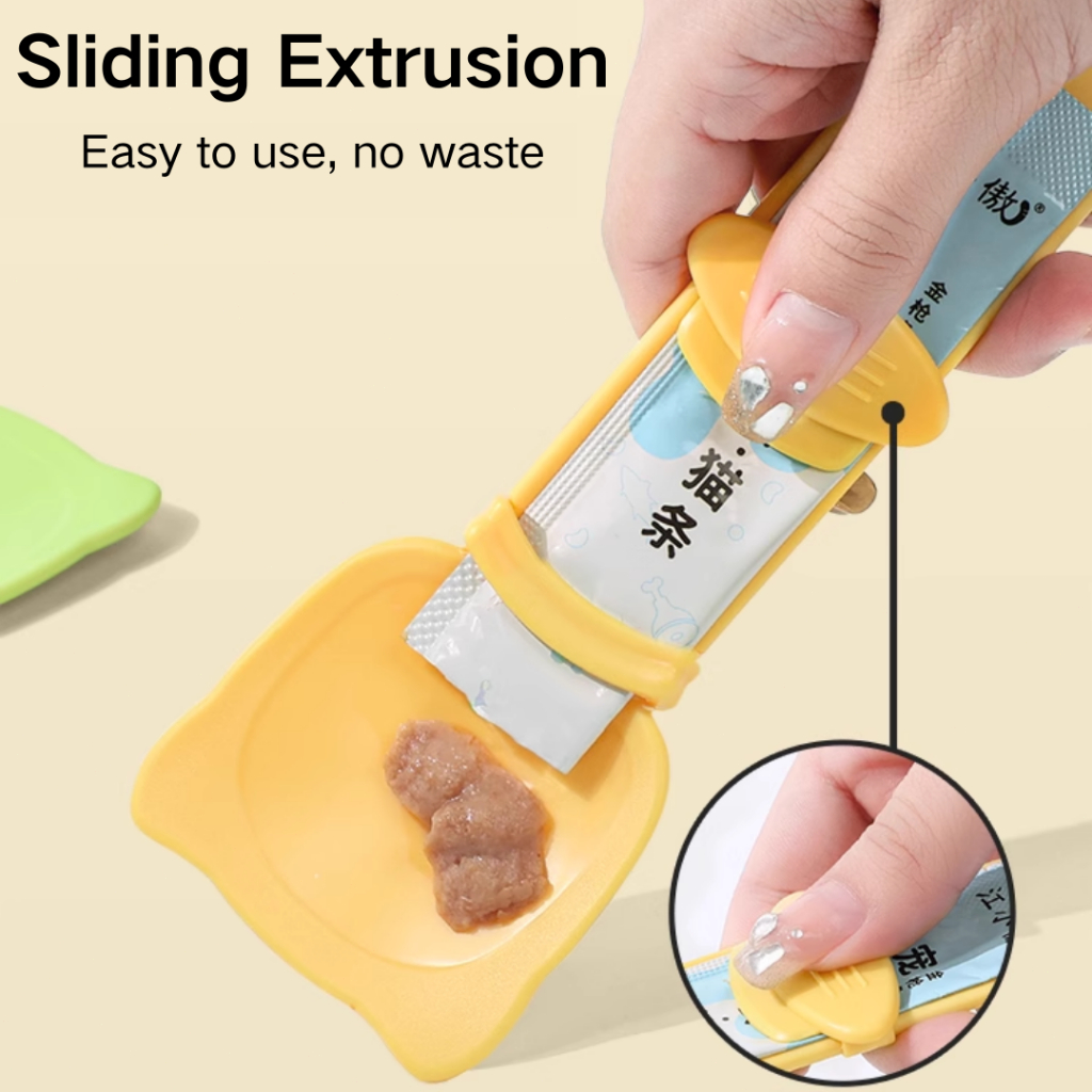 Quality:good Suitability:good Appearance:good Bought one earlier and found it super useful. The front part can be pressed down like a seal for opened stick puree treats. The spoon is great for preventing my greedy cats from biting through the pack and potentially the fingers of my visitor feeders haha