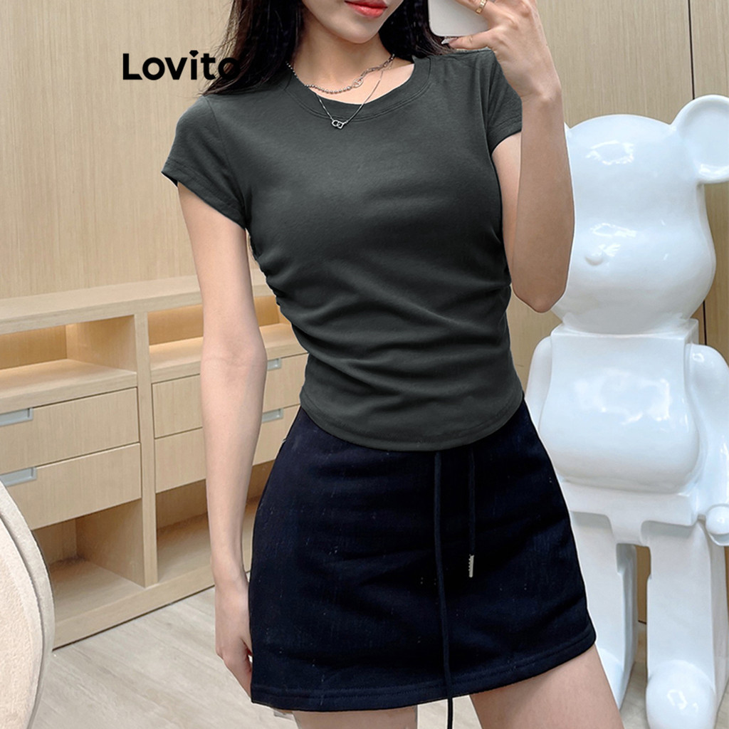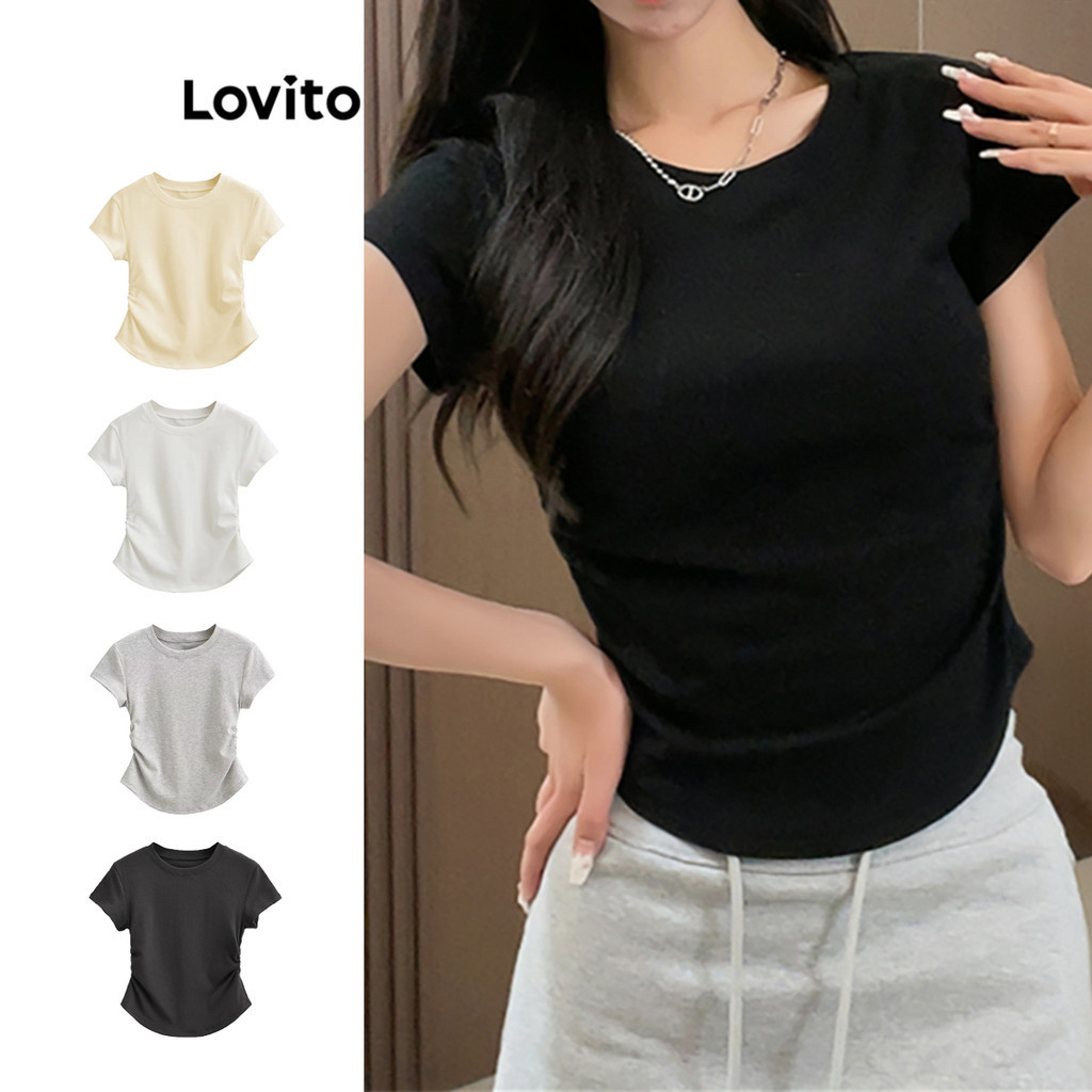 Lovito Casual Plain Ruched T-Shirt for Women LNE35228 (Multi-color)