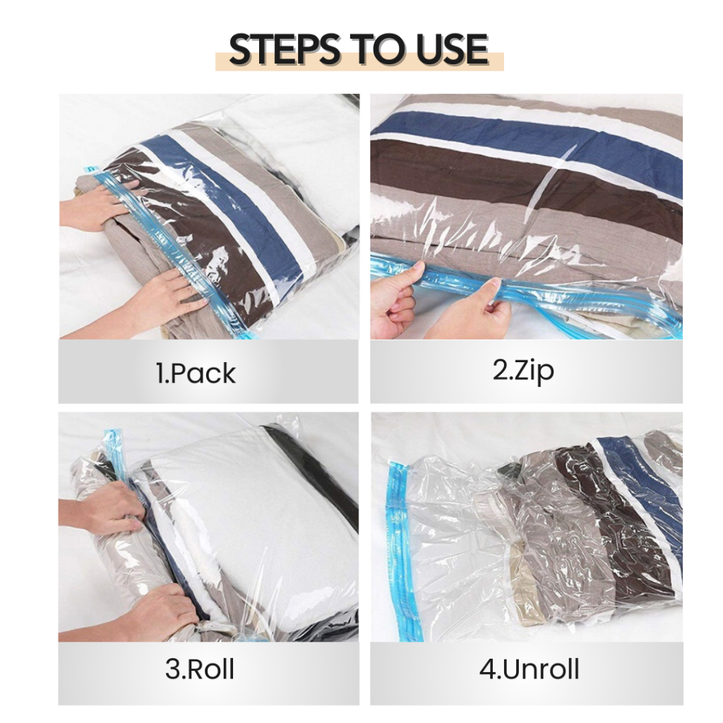 mixshop Hand Roll Travel Vacuum Bag, Household Storage, Compression, Organizer [SG READY STOCK]