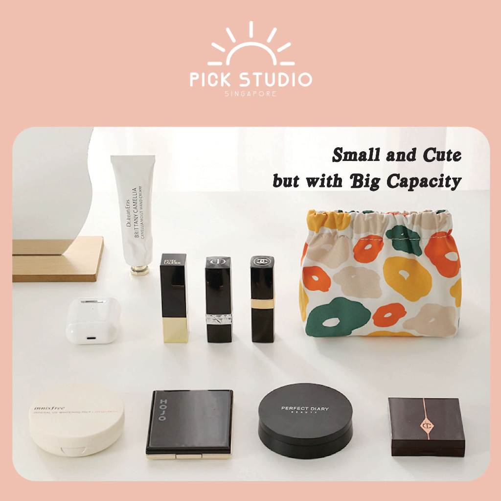 Colour:summer + floral Material Quality:soft Received it within 2 days, super affordable online here as compared to purchasing it for a regular store. It’s cute & portable. You can store quite a few things e.g hand sanitizer, tissue, wipes, accessories if need be