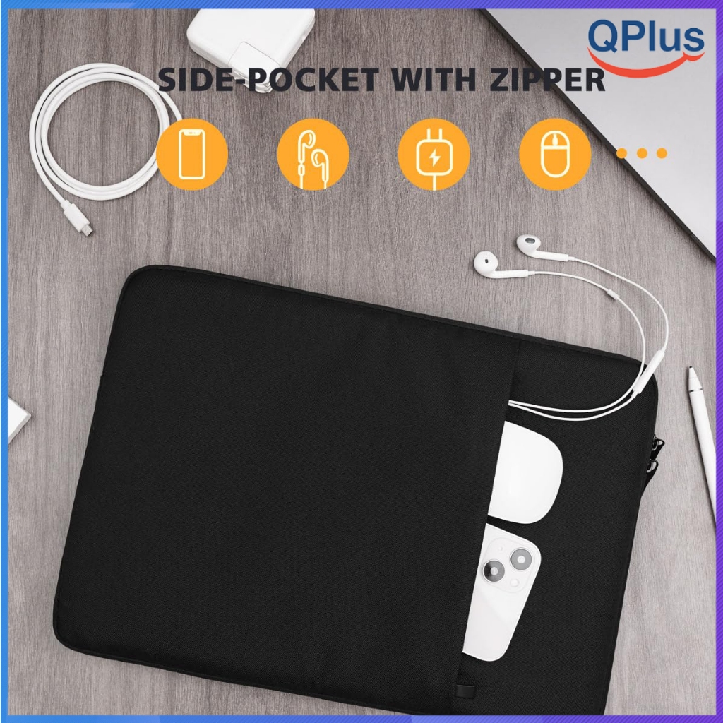 Love the laptop sleeve! The quality is so good. There’s a front pocket to put the chargers and different devices. My 15.6” laptop fits perfectly ~