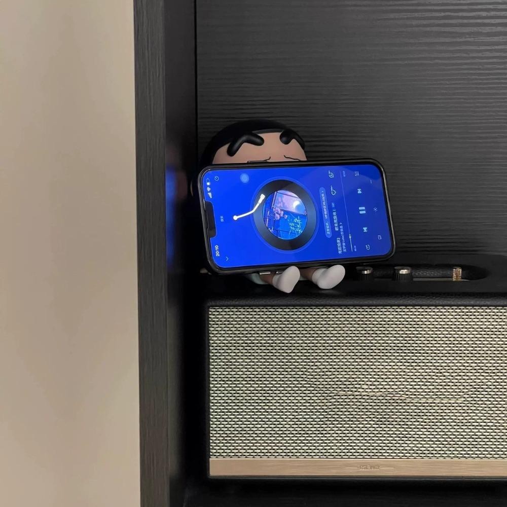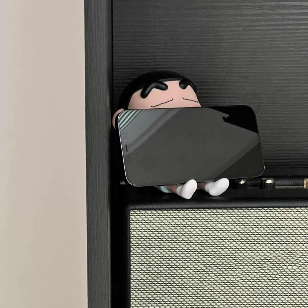 USTHOW Creative Phone Holder, Crayon Shin-Chan Figure PVC Doll Mobile Phone Stand, Figure Toys Support Desk Decor Portable Cell Phone Bracket Phone Accessories