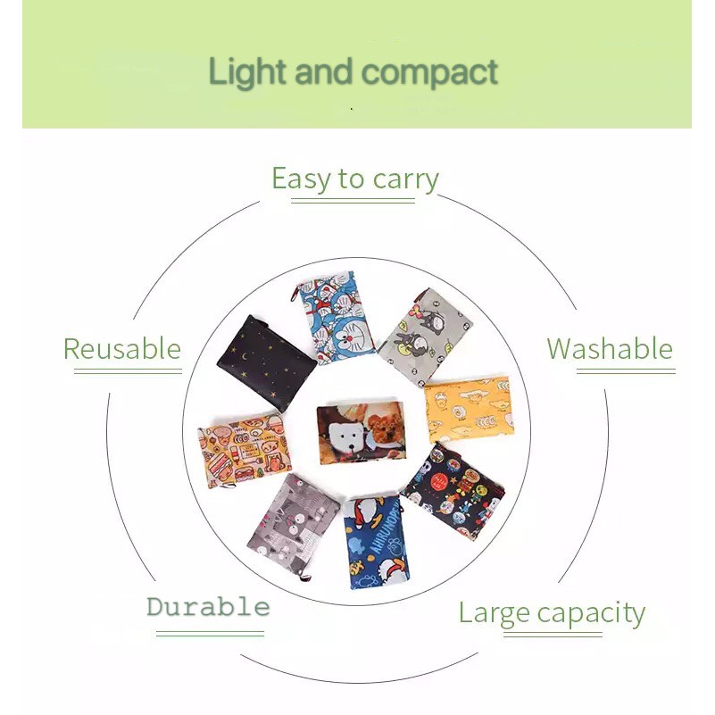 Colour:Bright colours Material Quality:Waterproof & compact size, easy to carry anywhere in your own carrier. Items fast received within 2 days after order. Thickness just normal, colourful foldable shopping bags with clear printing quality. Worth buying again next time!